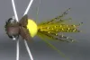 This muddler is tied on a small stainless Mustad hook using orange deer hair, orange dyed grizzly hackle and natural rabbit dubbing with a bit of orange flash mixed in. A small beauty indeed and sooo easy to see at night.