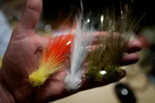 It typically doesn't take much work to pile up the materials for a fly pattern, shoot a bunch of flies together with some tools or get a picture of them drying in an epoxy rotor or a piece of cork. You can also shoot details of the fly. The same light and setup will mostly do fine for detail shots.