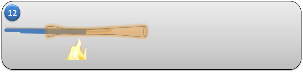 Step 12 - Heat the coating in the point where it turns into loop. Be careful, not to apply too much heat to the core. It is very sensitive to heat.