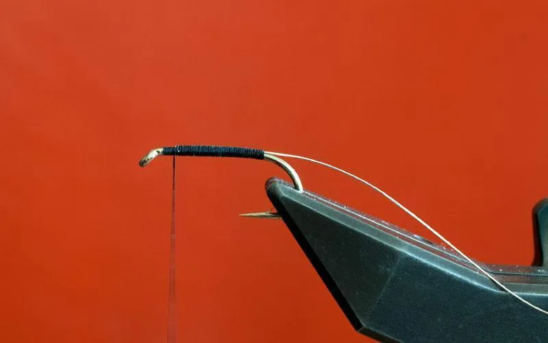 Take the thread back to the tie-in spot in even, touching turns, making a smooth foundation for the tinsel body